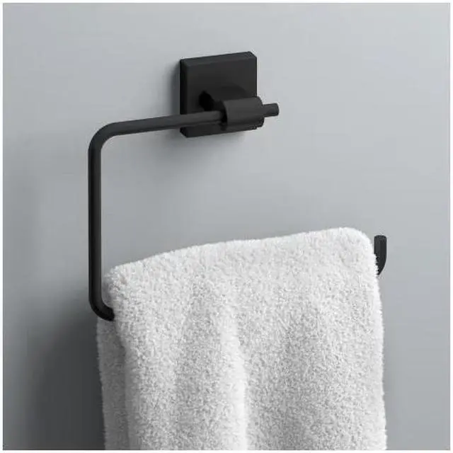 Bath hardware: matte black square open towel ring for the bathroom