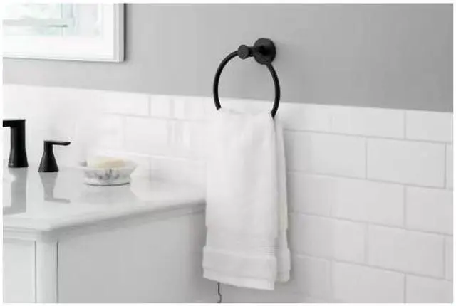 Featuring a transitional attractive style, this Lucien Towel Ring is designed to complement a wide variety of bathroom decor. The easy to install design includes all mounting hardware required. Pairs with other pieces from Glacier Bay's Lucien collection for a complete look.