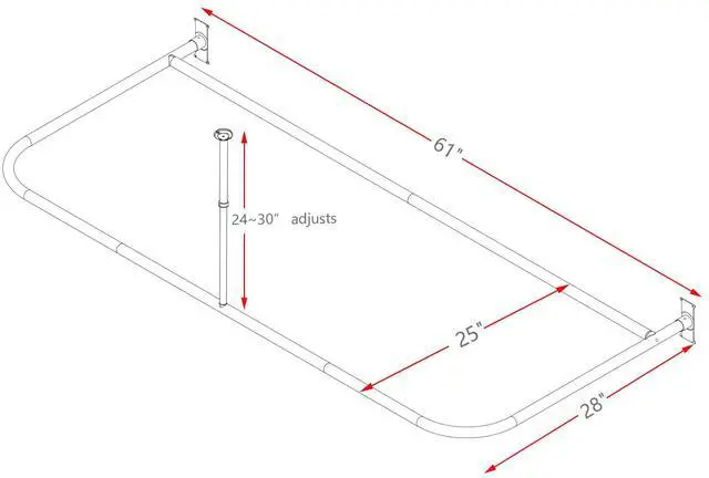Crafted from premium rust-free aluminum, this rod features a generous 61"" length and 28"" curved depth, creating a spacious, open shower environment that eliminates the cramped feeling of standard straight rods. Unlike flimsy tension rods, our design includes an adjustable ceiling support (24""-30"") that reinforces the structure, eliminating sagging and delivering rock-solid stability you can trust.