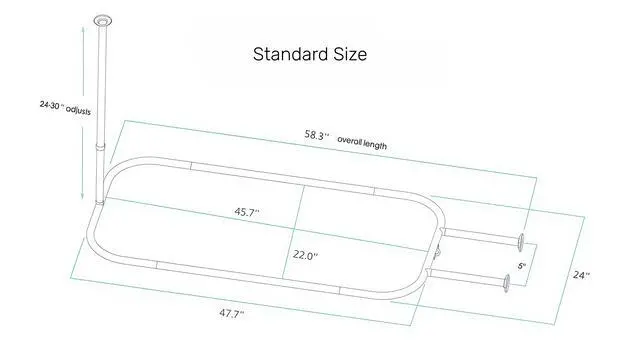 Made from high-quality rustproof aluminum, the rod is lightweight yet incredibly sturdy, resisting corrosion, tarnish, and rust in wet bathroom environments for years of reliable use. The 58.3"""" overall length and 24"""" depth ensure a perfect fit for most standard clawfoot tubs, creating a spacious, open shower environment that eliminates the cramped feeling of standard straight rods.