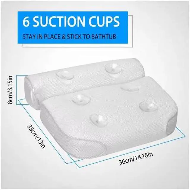Indulge in ultimate comfort and support with our Bathtub Pillow! Designed with an ergonomic 2-panel structure, it provides optimal neck, head, and shoulder support, easing tension and fatigue after a long day of activities. Crafted from unique 3D mesh fabric, this pillow offers excellent breathability and ventilation. Its innovative design allows water and air to permeate through the holes for quick drying, ensuring a soft, breathable, and comfortable experience every time. Equipped with 6 sturdy suction cups, this pillow securely attaches to the bathtub surface, preventing sliding and ensuring stability during use.