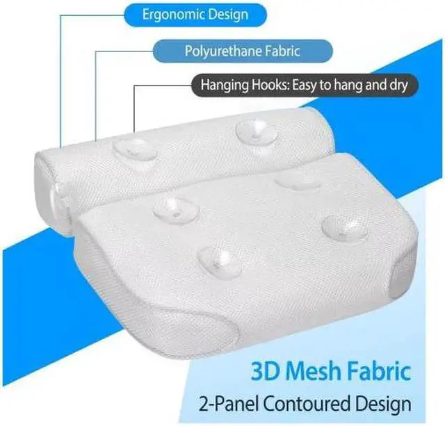 Breathable 3D Mesh Fabric: Crafted from unique 3D mesh fabric, our pillow ensures excellent breathability and ventilation, allowing water and air to permeate through the holes for quick drying. Enjoy softness, breathability, and comfort during every bath.