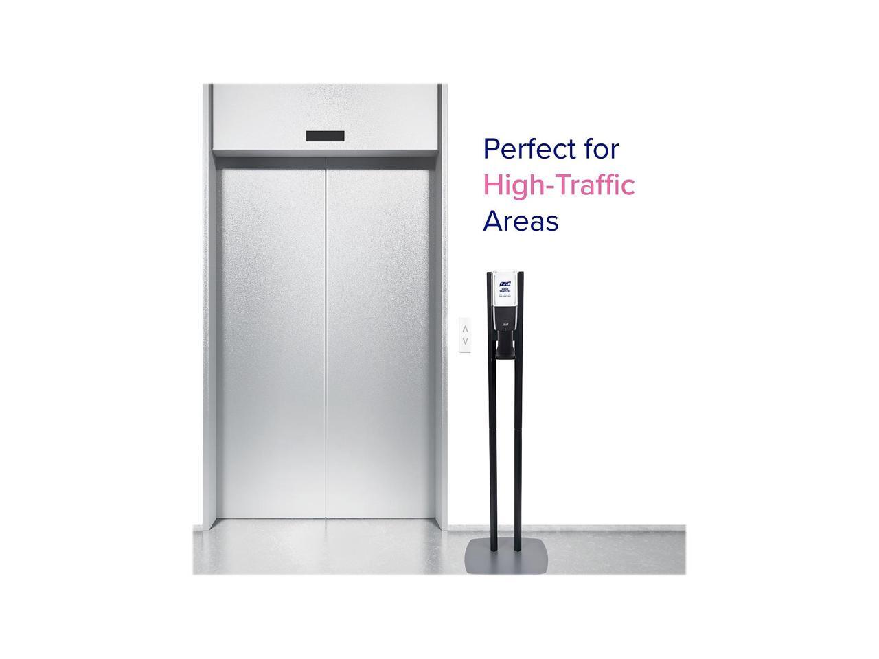 - For use with Purell ES10 1200mL hand sanitizer refills (sold separately); compatible with 8353-02, 8351-02, 8357-02 refills. Features a sturdy, low-profile baseplate that maximizes stability.