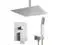 Shower System Include: Rainfall shower head and ceiling mount shower arm, handshower head and shower hose, hand shower water connection, and brass shower valve with 2-way diverter.