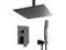 Shower System Include: Rainfall shower head and ceiling mount shower arm, handshower head and shower hose, hand shower water connection, and brass shower valve with 2-way diverter.