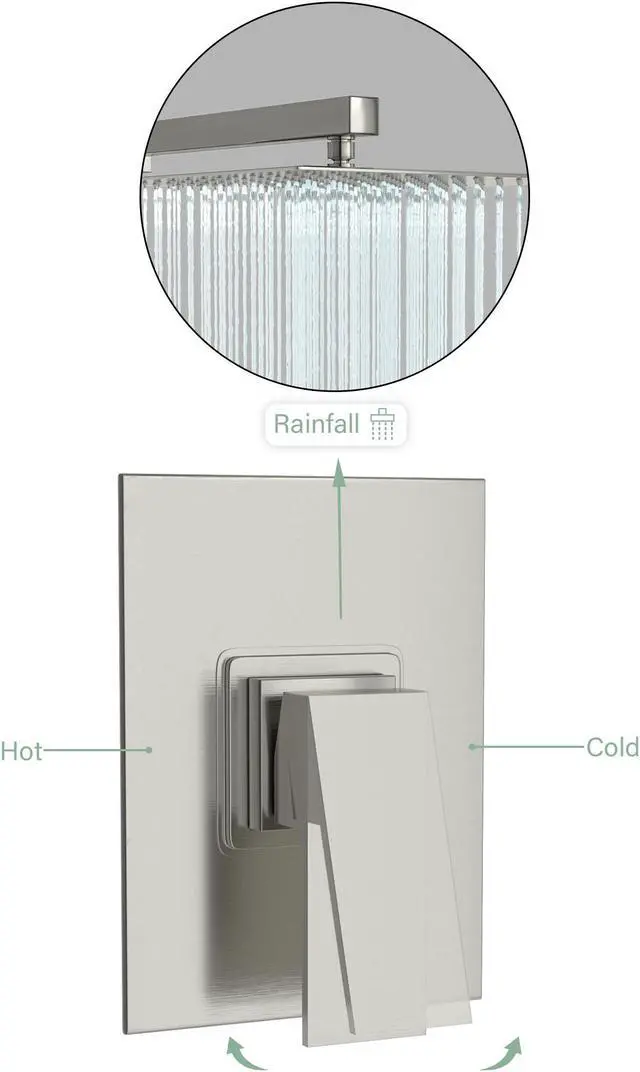 Installation: Wall mount rainfall shower head and shower kit with valve installation type come with clear install instruction.