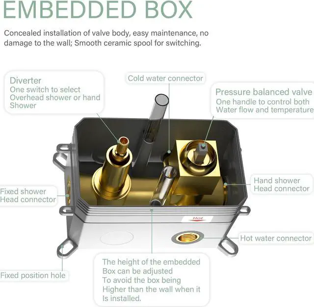 Check valves: Check valves are included in the fitting. Prevents knocking noises inside the shower system.