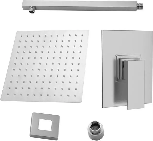 Shower system include: Rainfall shower head and wall mount shower arm and brass shower valve.