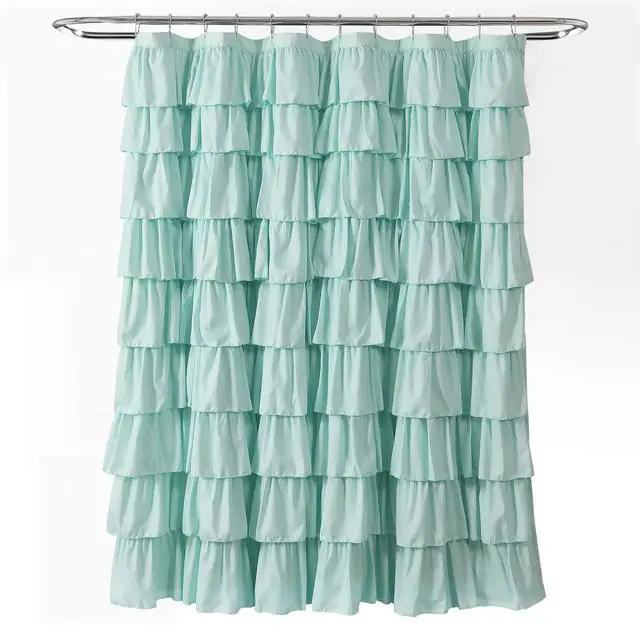Add charming texture to your bathroom with the Lush Decor Ruffle Shower Curtain. Layers of ruffles cascade down the solid colored curtain, adding a feminine touch to your primary, guest, or kids bathroom decor. The frilly and fun aesthetic of these ruffled shower curtains for bathroom are perfect for a cottage core, minimalist, or coquette decor style. This pink shower curtain measures 72 inches wide by 72 inches long and is crafted from a soft microfiber fabric. Add this cute shower curtain to your coquette bathroom decor. Installation is easy with 12 button holes at the top to hang with shower hooks or rings. Pair this fabric shower curtain with a liner, sold separately. To care for this bathroom curtain, simply machine wash cold on the gentle cycle and hang to dry. Do not tumble dry. Use a steamer to release wrinkles if needed.