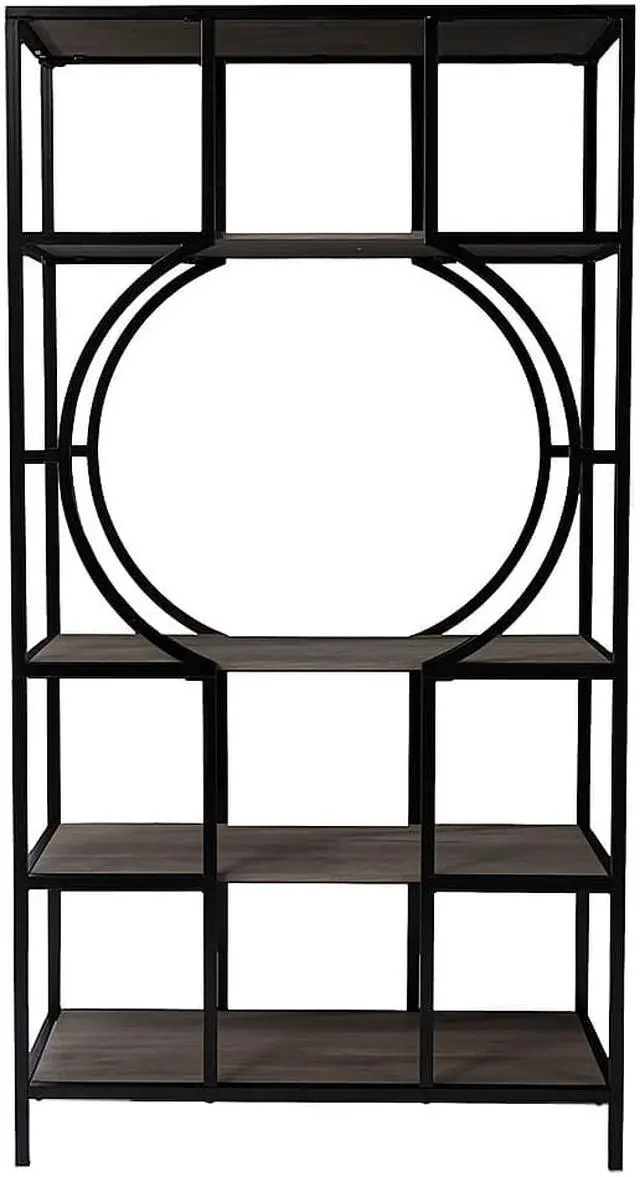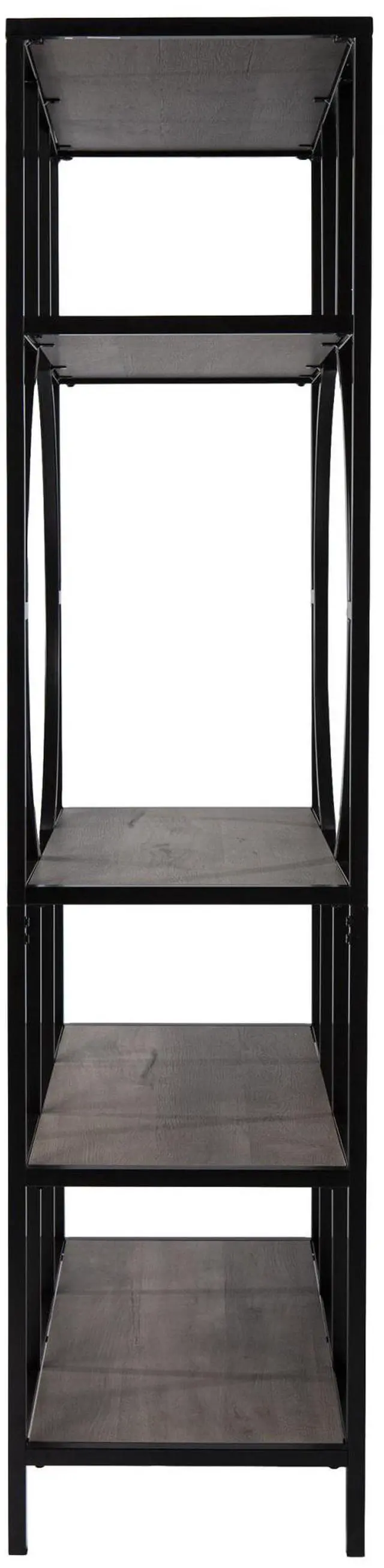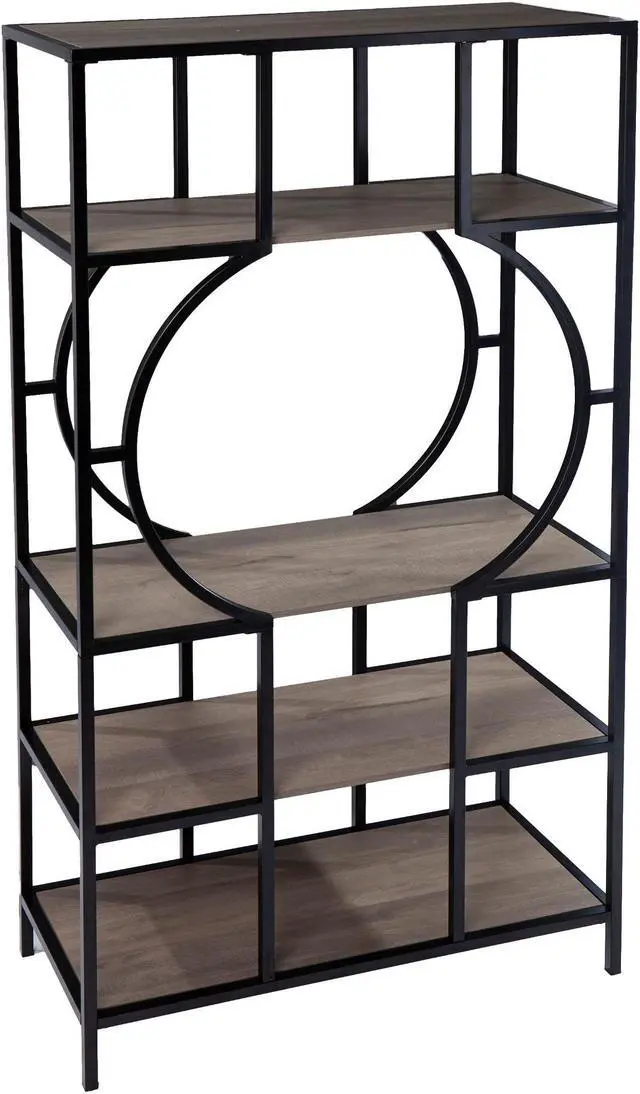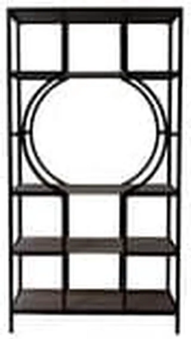 Product Features: Contemporary 5-tier bookcase Etagere comes with display storage Has 4 spacious shelves Unique frame design creates a modern feel Narrow and small space friendly footprint Spacious shelves organize photo albums or decor pieces Recommended for indoor use only Made in