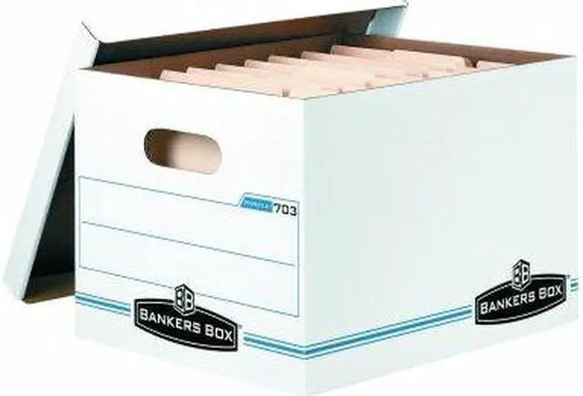 Dimensions: 10"H x 12"W x 15"D. Easy-grip handle for portable filing on the go. Bankers Box storage boxes offer durable and accessible organization for your files and more.