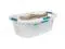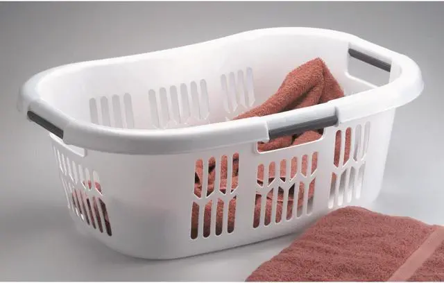 3 sturdy grab through handles for easy 1 or 2 handed lifting. Curved design sits on hip for comfortable 1 handed carrying. Heavy duty construction and smooth finish prevent snagging delicate items. 1 bushel. 25.75'' x 17'' x 9.5''.