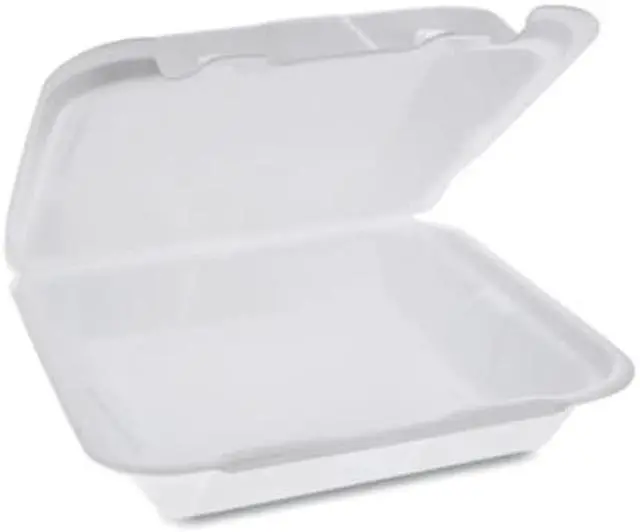 Durable foam construction makes hinged lid containers a perfect lunchtime or dinnertime choice. Containers are insulated to maintain food temperatures at their tastiest. Excellent for use with both hot and cold foods. Dual Tab Lock Happy Face.