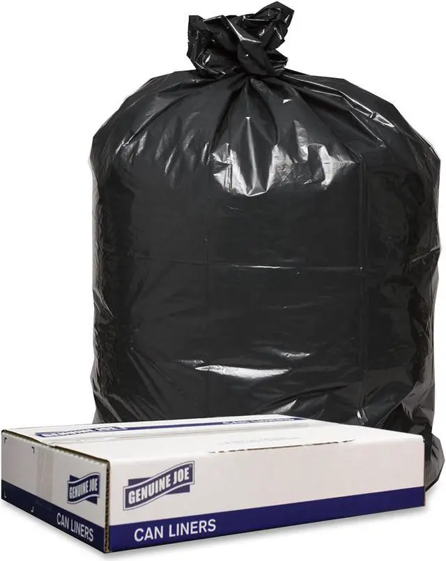 Extra heavy-duty, trash can liners offer an excellent tear-strength, stretch and puncture-resistance to hold a variety of refuse. They are also leak-resistant to contain liquid contents. Star-bottom construction is designed for more even distribution of contents. Low-density liners come in a coreless roll for easy dispensing anywhere.