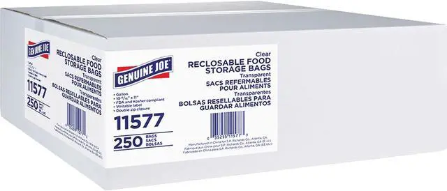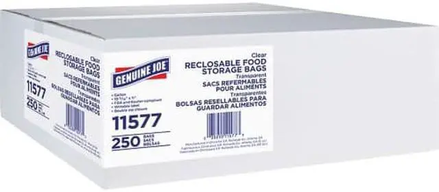 Food storage bags feature a sturdy zip closure that creates a tight, secure seal to lock in freshness and keep your foods tasting great for longer. Write-on label offers a handy area to track dates or label foods to help you efficiently manage your foods. Plus, its thick material and durable edges prevent leaky messes to provide the confidence to store just about anything. Storage bags in a self-dispensing box are perfect for keeping beef, seafood, poultry, vegetables and more.