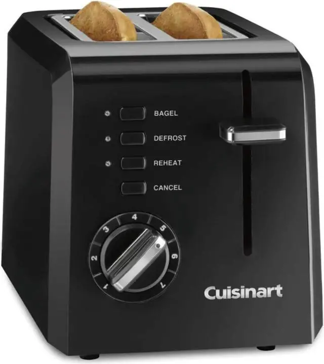 Take control of your toast with the Cuisinart 2-Slice Compact Plastic Toaster, which boasts seven shades of toasting. This compact toaster saves space, whether placed sideways or facing forward to fit any kitchen counter or even dorm room. Whether you want a thick toasted bagel to snack on, toaster pastries, or thin sliced bread for a healthy twist on croutons, the wide slots and high-lift carriage make it easy to toast every time.