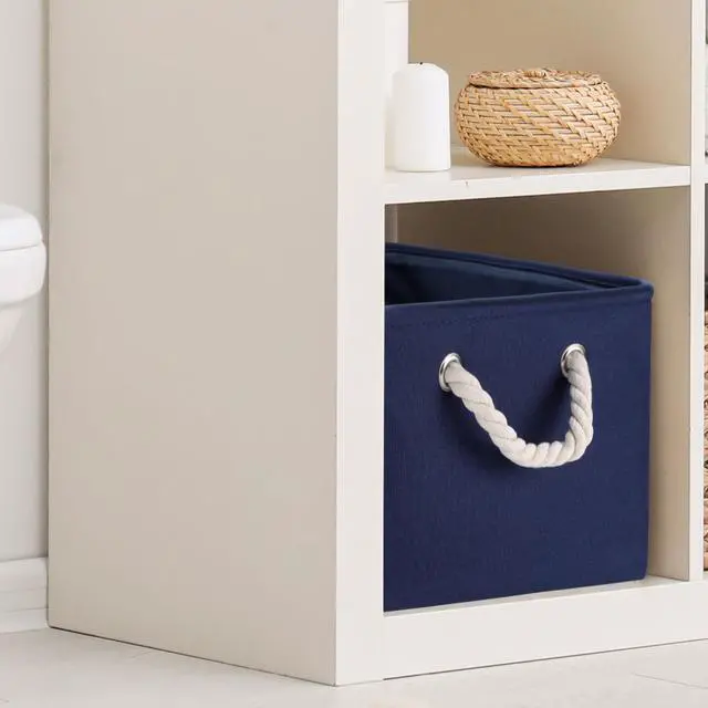 Our collapsible storage baskets combine both of the decorative and practical forms. Can be used alone or with shelves or cabinet. They are not only household good helpers but also charming decorations. Comfort grip handles and sturdy metal supporting frame provide durability and rigidity for daily use and ensure a greater product lifespan. Its large capacity makes it to be an excellent choice for keeping your home nice, tidy and organized.