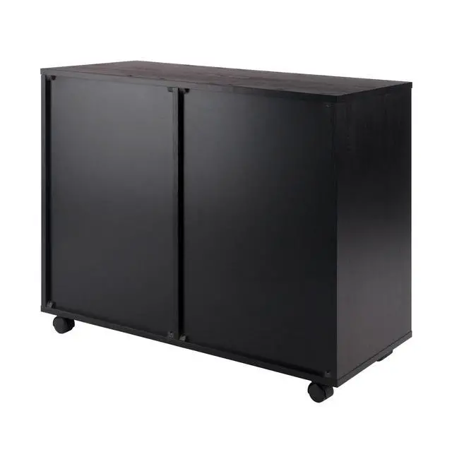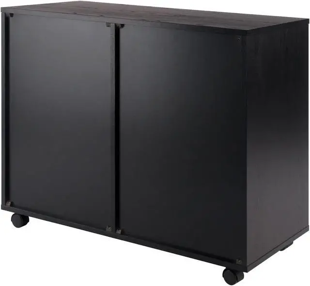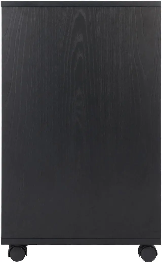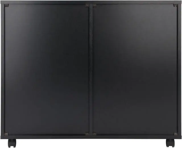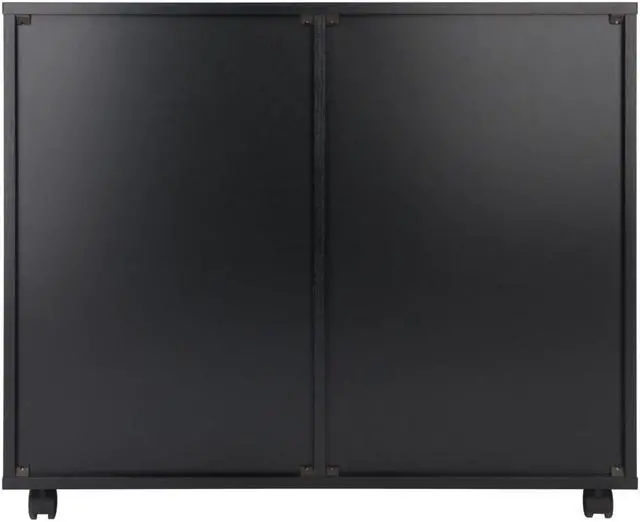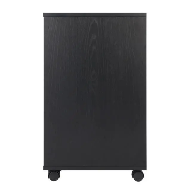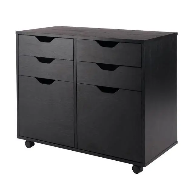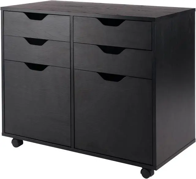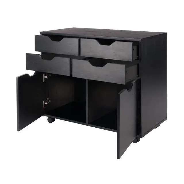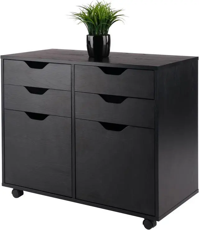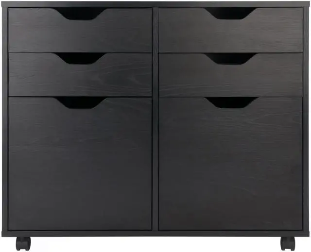 The Winsome Wood Halifax 2-Section Mobile Storage Cabinet is ideal for all of your organizational needs. With its clean, simple design, and convenient cut-out handles, you can use it anywhere. Keep it in a walk-in closet to expand your storage for clothing, shoes, handbags and accessories. Or use it in a child's bedroom to reduce the clutter of toys, dolls, and puzzles. Rejuvenate your garage space, mud room, or shed while providing much needed space to keep tools or sports gear organized. This Halifax Cabinet features four gliding drawers with interior dimensions of 13. 2"W x 11. 7"D x 2. 5"H and two spacious cabinets of 15. 1"W x 14. 7"D x 13. 7"H, making it adaptable to a variety of storage needs. The unit has six wheels, two of which lock, for easy mobility as well as a way to keep it securely in place. The Cabinet is made of sturdy composite wood in a contemporary black finish that will blend with any decor. For additional storage, combine the 2-Section Cabinet with other organizers from the Winsome Halifax collection. This item conveniently ships in 1 box and is ready for assembly. Replacement part request can be submitted directly to the manufacturer within 60 days from date of purchase. Simple, practical, with a contemporary look, the Halifax 2-Section Cabinet is the answer for organizing your office supplies, craft materials, shoes, sports gear, and much more. With four drawers plus 2 sizeable cabinets , this mobile unit is the perfect organizational tool for your home. Made of sturdy composite wood in a contemporary black finish. 4 easy-glide drawers with cut-out handles, 2 lower cabinets. 6 wheels for easy mobility (2 locking). Clean, simple designBlack finishMade of composite woodPart of the Winsome Halifax Collection.