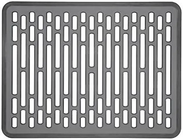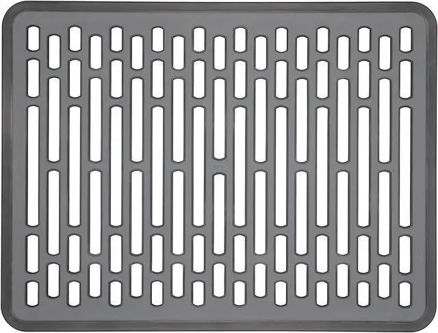 The OXO Good Grips Large Sink Mat provides a soft cushion to protect dishware and sink surfaces from scratches, chips and dents. The rigid, raised design allows drainage and airflow to promote quicker drying. Non-slip feet elevate the Mat while keeping it in place. Our Sink Mat is PVC-free and easy to clean. 0.75L x 12W x 16H Inch