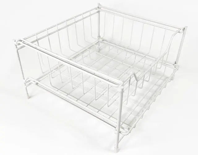 Our Versatile 2 Tier Metal Table Top/Pantry Snack Organizer is a must have for those who love to snack and who doesn't? Great for storing a variety of snacks - chips, cookies, fruit, granola bars, crackers, chocolate and more! Helps increase stroage space while organinzing your favorites! Made of strong durable iron metal with 2 tier storage drawers. Great on any counter, pantry, kitchen cabinet and more!. Ideal for home and office. Measures 11.8"L x 10.5"W x 6.50"H - Color White