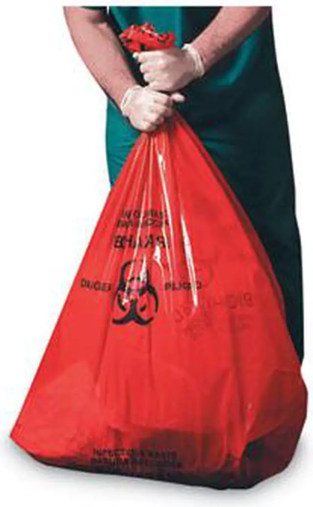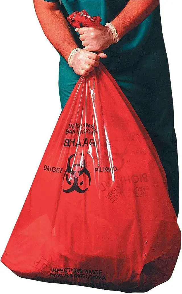 Color-coded and clearly labeled pre-printed healthcare bags allow for easy separation and identification of dangerous biological waste to help ensure workplace safety. Sturdy and strong, they provide a simple and reliable way to dispose of medical waste. High-density polyethylene construction provides excellent lifting strength with minimal stretching. Star-sealed bottom minimizes the potential for messy leaks. Labeled: Infectious WasteBiohazard. Application: Can Liner; Capacity Range (Volume) [Min]: 30 gal; Capacity Range (Volume) [Max]: 33 gal; Thickness: 0.55 mil.