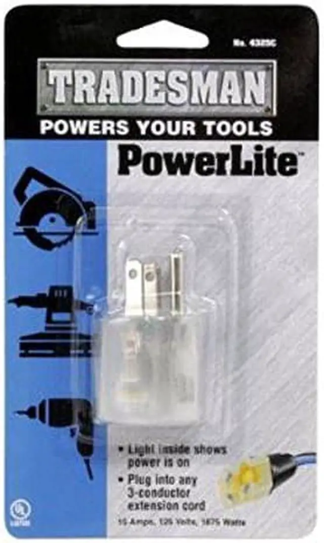 Woods 4325C Single Outlet Power Adapter Plug with Lighted End, Clear, 125-Volt. Single outlet adapter, UL Listed. Suitable for use on up to 1, 875-watts. Bulb inside that shows the power is on. For general purpose use around the home or office. Converts single outlet into power indicator light outlet. Bulb inside that shows the power is on and plug into any 3-conductor extension cord. The Woods (R) brand is a registered trademark of Coleman Cable Inc.