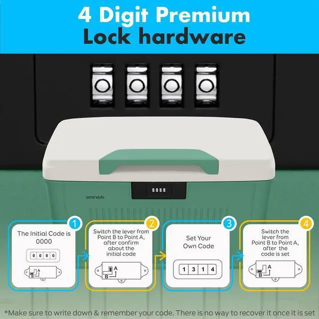 The SereneLife 8.5 -Gallon Heavy-Duty Locking Storage Bin is your reliable solution for secure and space-saving storage. Built with reinforced ABS material, this container resists impacts, scratches, and stains, making it ideal for demanding environments. The integrated 4-digit combination lock adds a strong layer of protection for your belongings, while the lift-top hinges allow easy access when needed. With a generous 25-liter capacity and support for up to 110 lbs., it's a powerful companion for organizing tools, valuables, documents, or everyday items. Stack multiple bins to maximize vertical space in your home, office, school, or mobile setup.