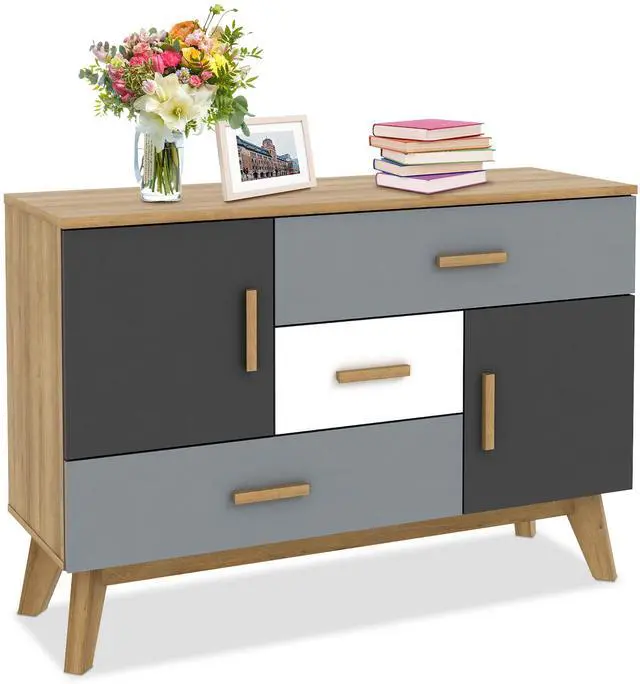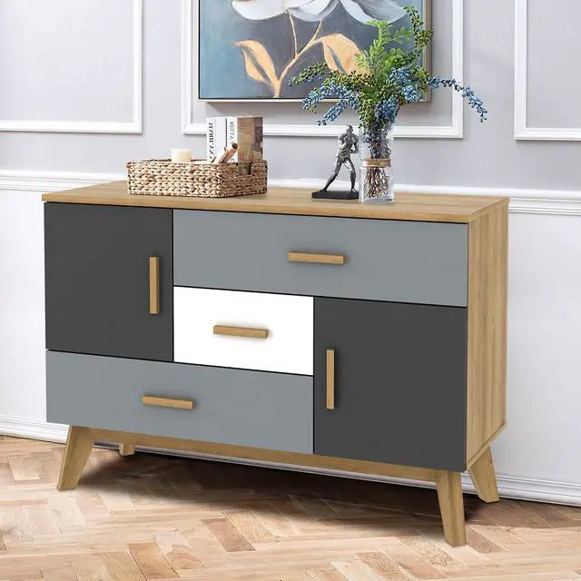 Still looking for a practical storage cabinet to make your home tidy and clean? Our cabinet is your perfect option that combines storage, decoration and display all into one. It is designed with spacious cabinet top, 2 enclosed doors and 3 drawers, which is flexible for you to store items in different sections. Moreover, the inner shelf features 3 adjustable heights to satisfy different needs. sturdy engineered wood ensures long service time and is not easy to deform. What's more, the anti-toppling device prevent the cabinet from tipping over for security. With elegant and modern design, this storage cabinet is suitable for your bedroom, living room, study and more.