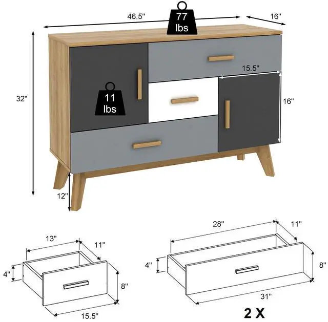 Wide cabinet top, 3 drawers and 2 doors gives you abundant storage space