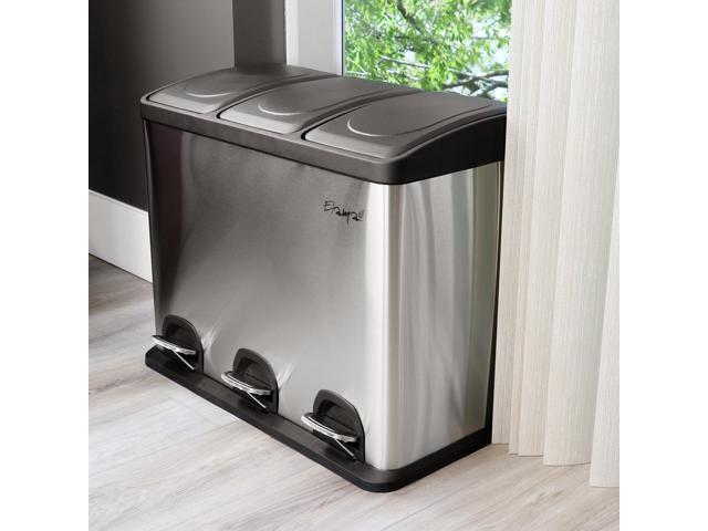 Elama 3 Section 15 Liter/4 Gallon Each Section Trash and Recycling Step Bin