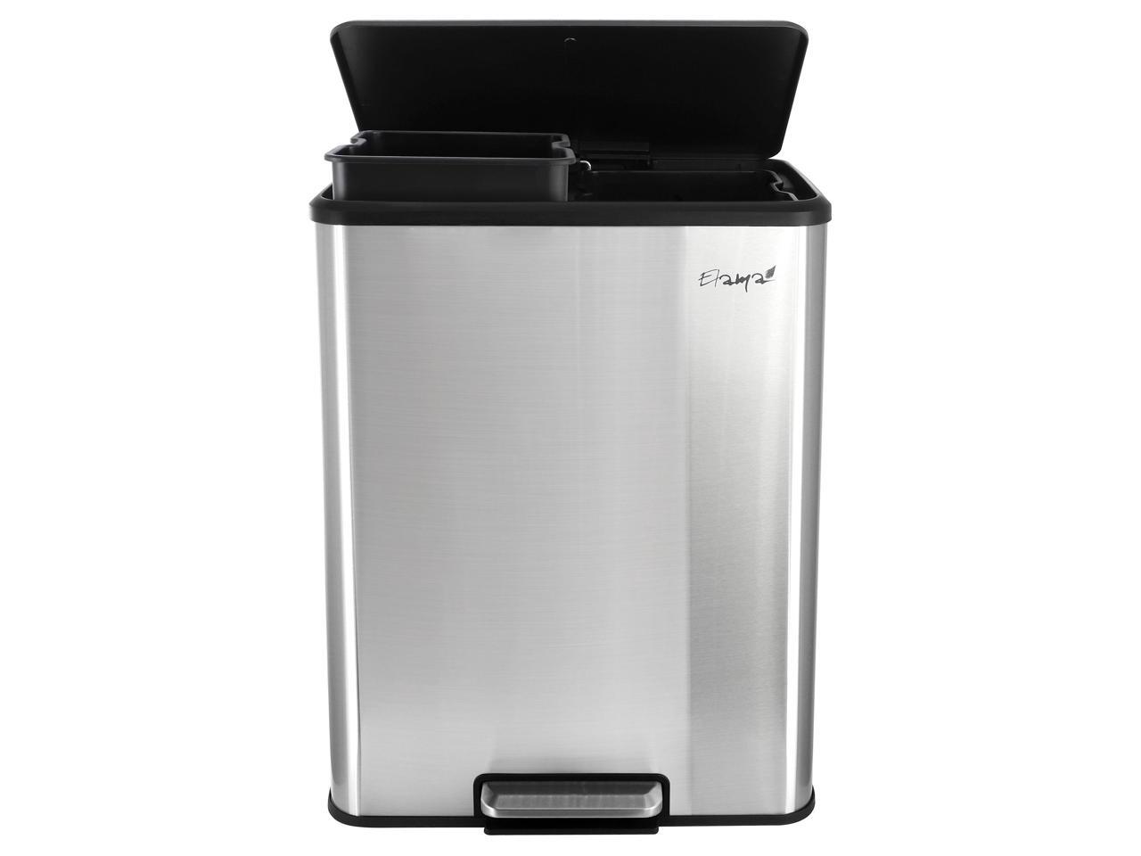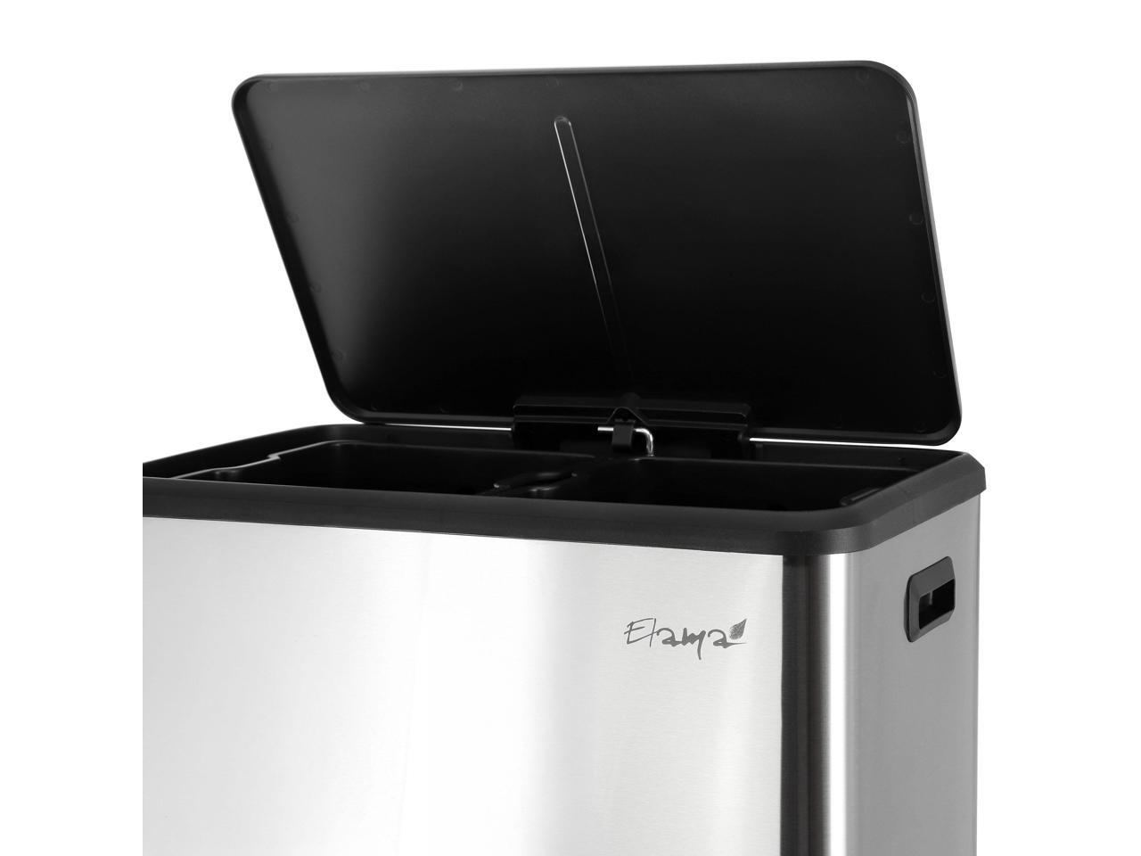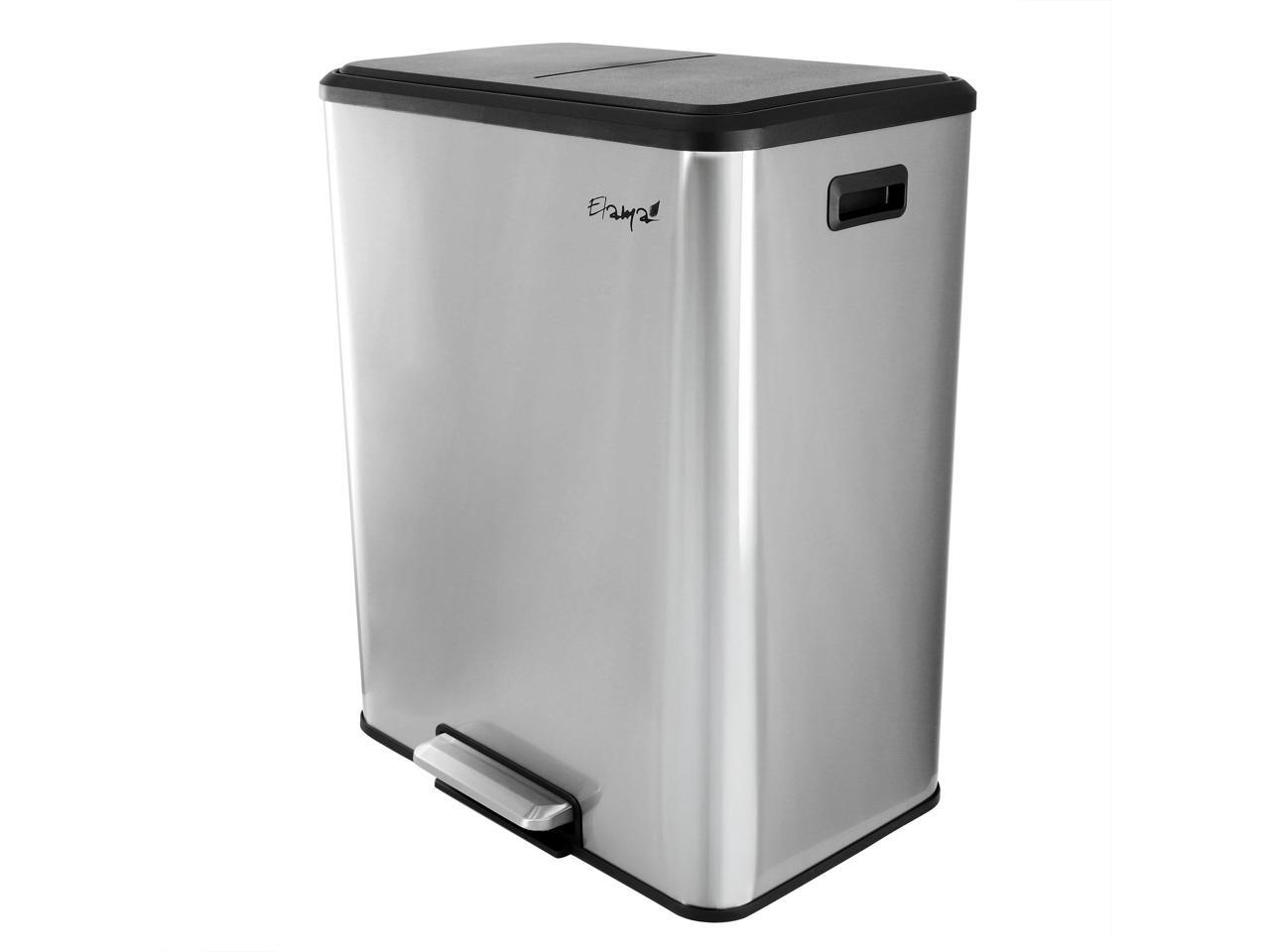 Elama 60 Liter 2 Compartment Large 8 Gallon Split Stainless Steel Step Trash Bin with Slow Close Mechanism