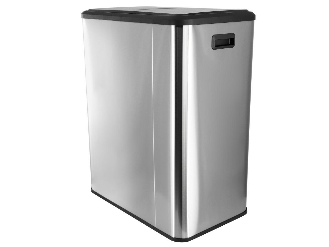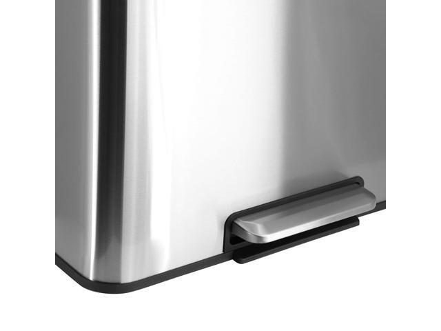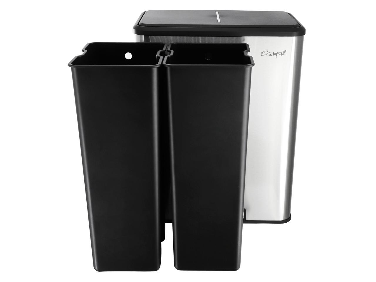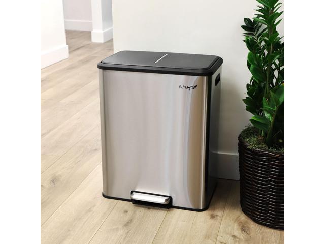 Elama 60 Liter 2 Compartment Large 8 Gallon Split Stainless Steel Step Trash Bin with Slow Close Mechanism