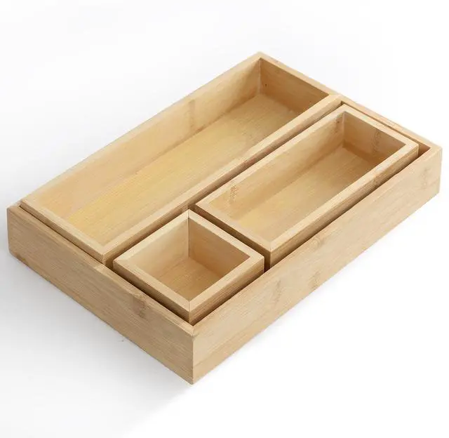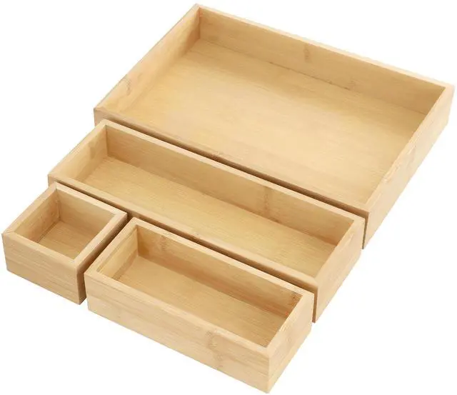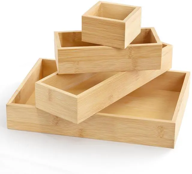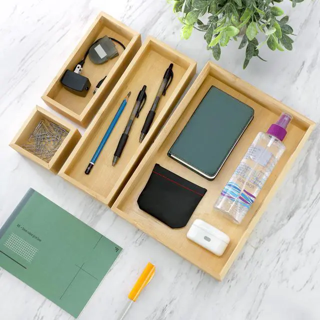 Designed for both functionality and durability, these bamboo trays are lightweight yet sturdy, making them ideal for everyday use. Their smooth finish and carefully crafted edges ensure a polished look while being easy to clean and maintain. Perfect for decluttering drawers, countertops, or shelves, the MegaChef 4 Piece Bamboo Storage and Organization Trays provide a simple yet effective way to create a more organized and visually appealing space.