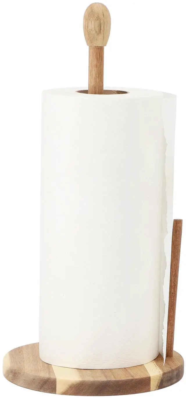 Beyond its aesthetic appeal, this paper towel holder is designed for everyday convenience. The simple yet functional design makes replacing rolls quick and easy, while the natural wood finish adds an inviting, earthy element to your kitchen space. Whether you're using it for spills, cooking, or entertaining, the MegaChef Acacia Wood Paper Towel Holder brings both style and practicality to your home, making it an essential addition to your kitchen accessories.
