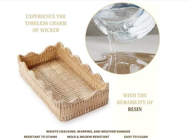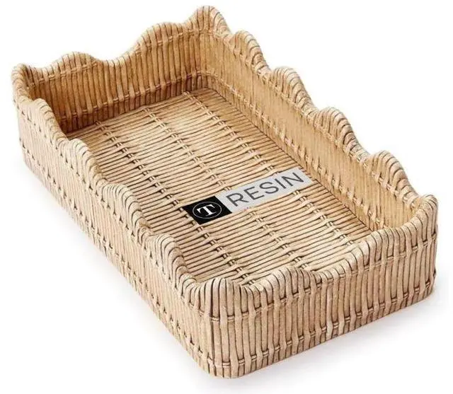 Elevate your table or countertop with the Twos Company Scalloped Edge Basket Weave Pattern Holder a charming blend of functionality and rustic elegance. Crafted from durable resin with a detailed basket weave design and scalloped edge, this decorative holder keeps guest towels, napkins, or utensils neatly organized while adding a stylish farmhouse touch to your kitchen, dining area, or bathroom.