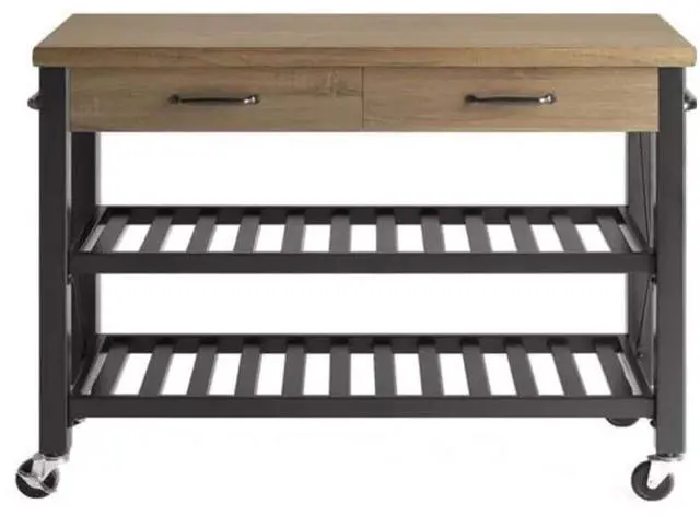Whalen Santa Fe Brown Kitchen Cart with Storage & Metal Shelving