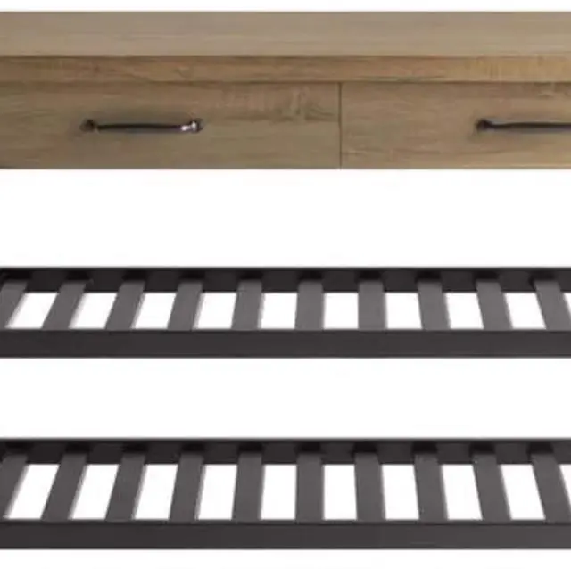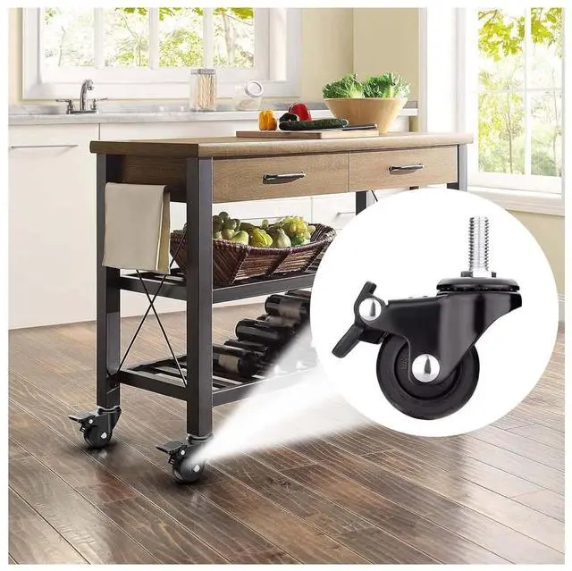 Add some functional style to your decor with the Whalen Santa Fe Kitchen Cart. The elegant island-style cart features a contemporary combination of metal and wood construction. It also offers a sleek profile that helps increase available kitchen workspace. This rolling kitchen cart has two sturdy, wooden pull-out drawers and two attractive metal shelves. It also includes a handy towel bar and caster wheels for easy movement. A must-have for modern homes, the portable kitchen cart comes with a TV stand feature, which adds to its versatility.