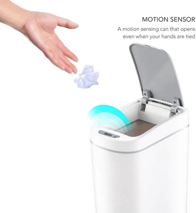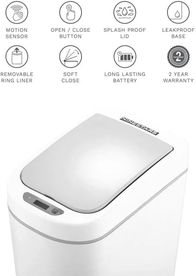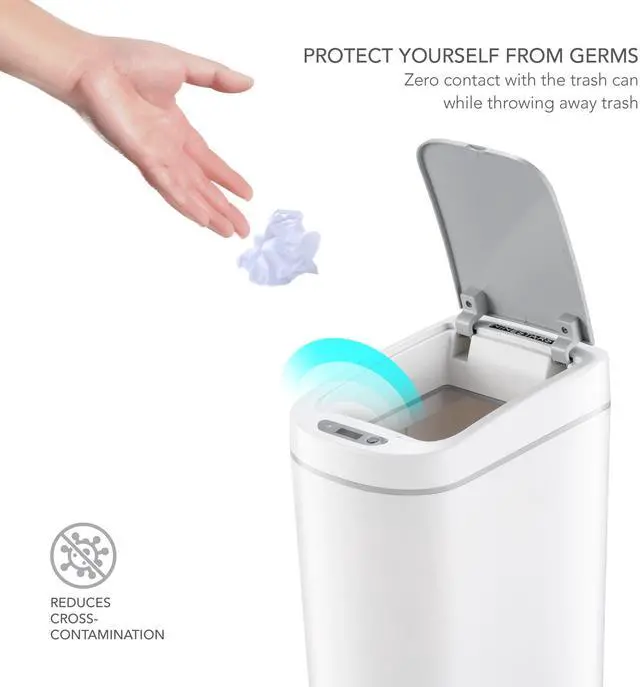 Upgrade your home with the Wenger 2-pack Smart Sensor Trash Cans, designed for modern convenience and hygiene. These smart trash cans feature a touchless open and close mechanism, allowing you to dispose of waste without manual contact or the need for a foot pedal. This innovative touchless operation promotes a healthier environment by minimizing the risk of cross-contamination from bacteria.