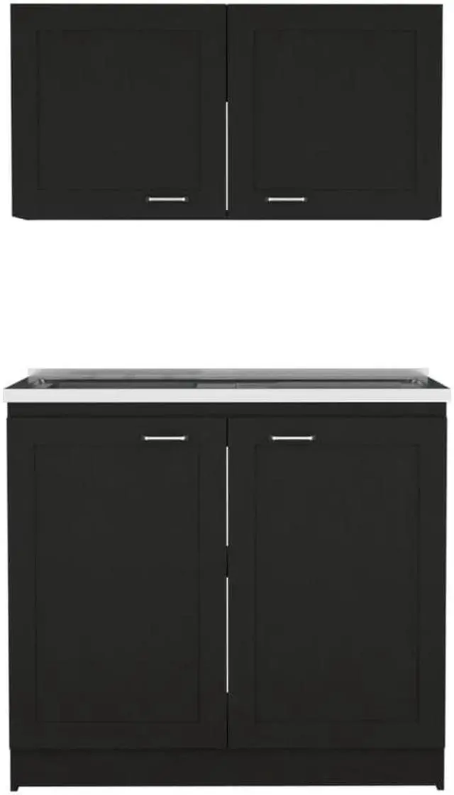 This set comes with two interior shelves for organizing your utensils and two-door cabinets for a unique look.