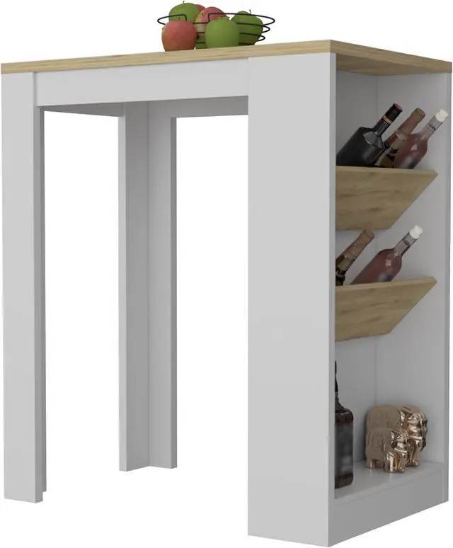 Kitchen islands will always be essential in your kitchen. Thanks to its ideal design it will not only give a unique touch but it can even be used as a main table. And this particular kitchen island is perfect for any wine lover! With two wine shelves, you can easily display your favorite collection in the best way and leave it within reach of everyone. Plus, you'll have plenty of extra storage space with a low shelf. And don't forget the sturdy top surface this island is perfect for all your cooking needs!