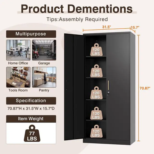 Upgrade your storage solution with our steel cabinets! Durable, corrosion-resistant, and easy to clean. Perfect for any room. Order now! Say goodbye to flimsy storage cabinets! Our heavy-duty metal pantry cabinet can hold up to 180 pounds per shelf. Get organized today! Maximize your space with our 6-floor metal cabinet! Adjustable shelves and practical design make it perfect for any storage needs. Buy now! Need more storage? Our steel cabinets are the solution! Suitable for homes, offices, garages, and more. Easy to assemble and use.