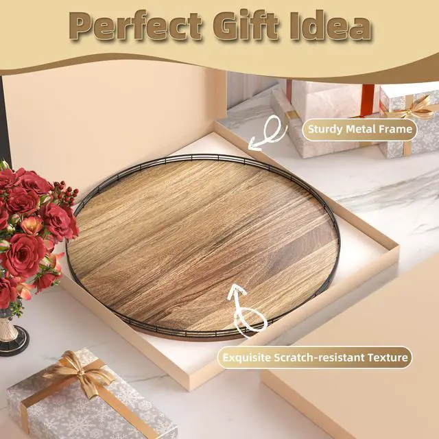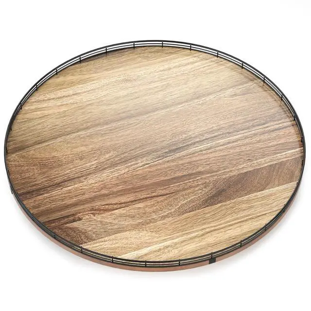 Acacia Wood 24" Lazy Susan Turntable Organizer for Table Top, Farmhouse Extra Large Round Lazy Susan for Serving Kitchen Countertop Cabinet for Charcuterie Centerpiece, Bathroom Vanity Tray Decor