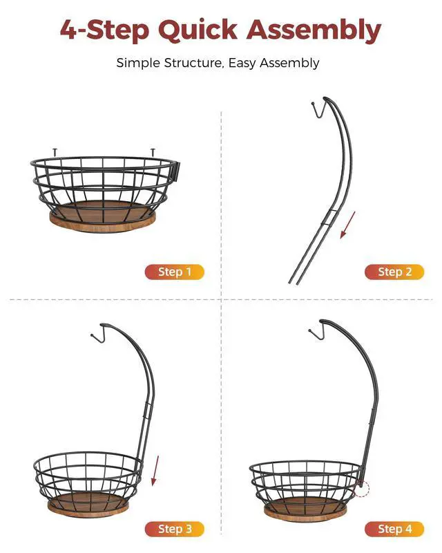 We understand your concerns! Our fruit basket is made of high-quality carbon steel with a wooden non-slip base and an upgraded banana hook. It’s sturdy, rust-resistant, and built for everyday use.