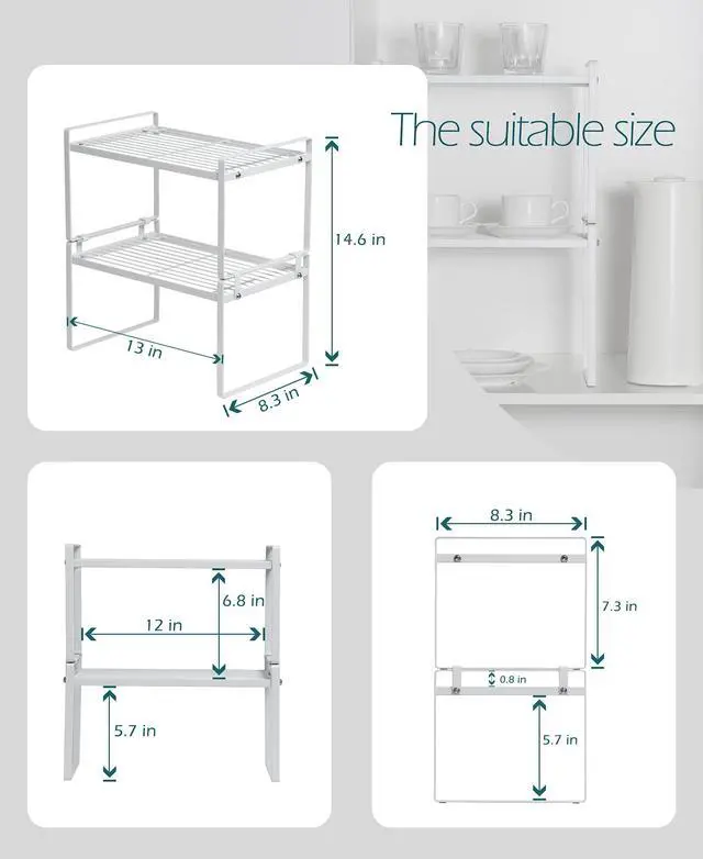 Standard version: One Shelf - 13 * 8.3 * 7.3 inches , Stacked Two Shelves - 13 * 8.3 * 14.6 inches
