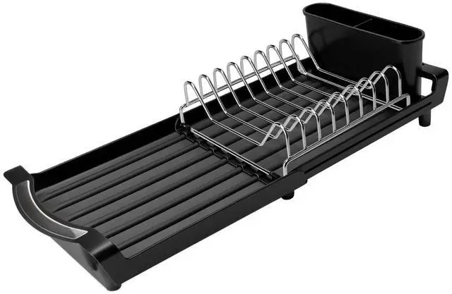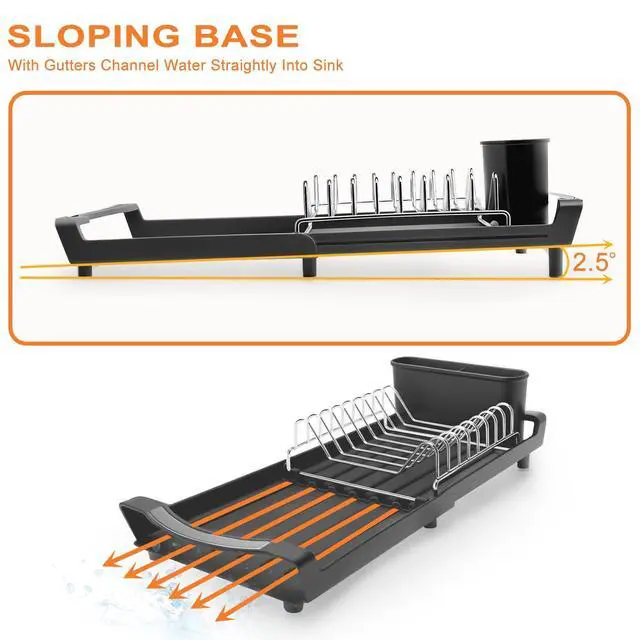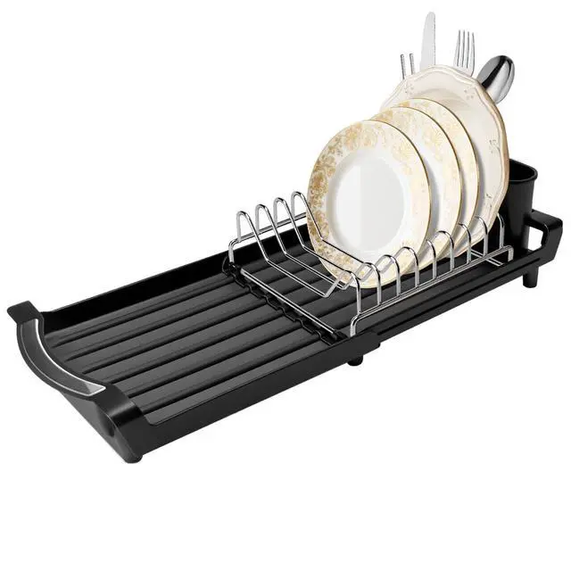 Dish Drying Rack Compact Expandable - A Space-Saving, Stainless Steel, Rust-Resistant Dish Drainer for Kitchen and Apartment Countertops/Sink Cabinets, Extendable from 11.42 to 19.9 inches(Black)