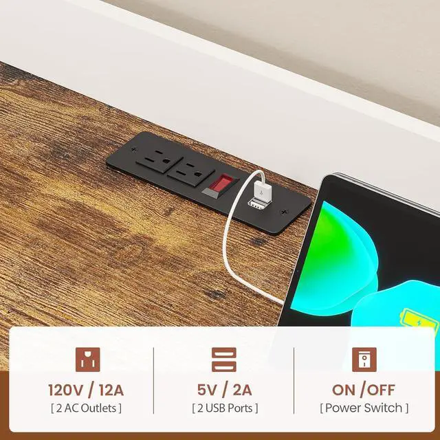 Bakers Rack with Power OutletThis coffee bar is equipped with 2 AC outlets, 2 USB charging ports to provide power for up to 4 devices simultaneously. The switch is convenient and safe to turn off power, no need to unplug appliances at all times. This bakers rack with storage cabinet can easily keep the kitchen tidy.