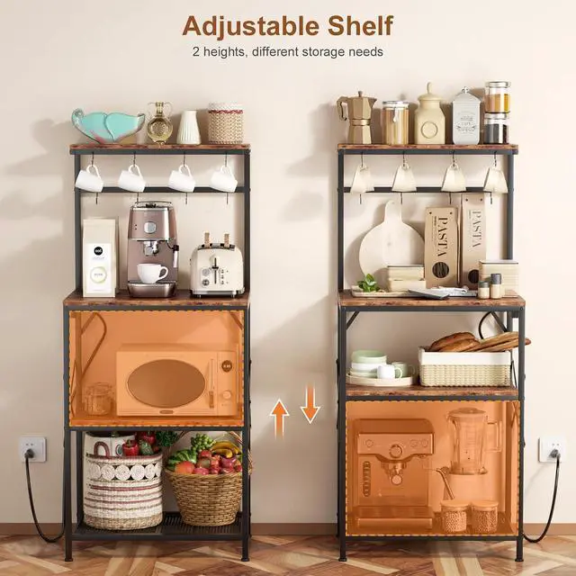 Switch: The kitchen storage rack is equipped with 2 sockets and air switch button, you can charge your coffee machine, microwave oven or bread machine without moving it, keeping your kitchen tidy and organized. You can interchange the sockets left and right according to your usage habits.