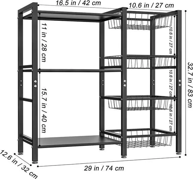 Wide Range of Uses The vegetable basket storage rack provides generous storage space, making it an ideal solution for kitchens, bedrooms, laundry rooms, and playrooms alike.