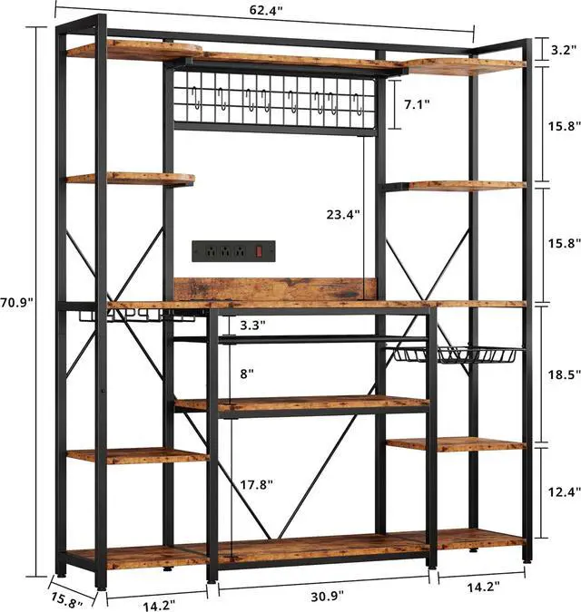 Extra Large Countertop: Our kitchen shelves features a 62.4 -inch-wide countertop, offering ample space to accommodate larger appliances like microwaves, coffee makers, or blenders.