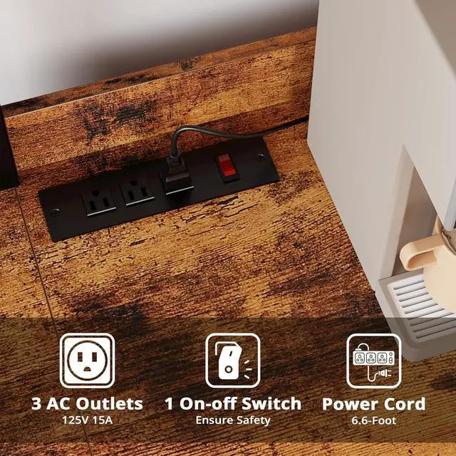 Power Outlets: Featuring 3 AC outlets, the coffee bar cabinet is perfect for powering multiple appliances simultaneously. The built-in power switch allows you to turn off all appliances at once, reducing energy waste and enhancing safety.